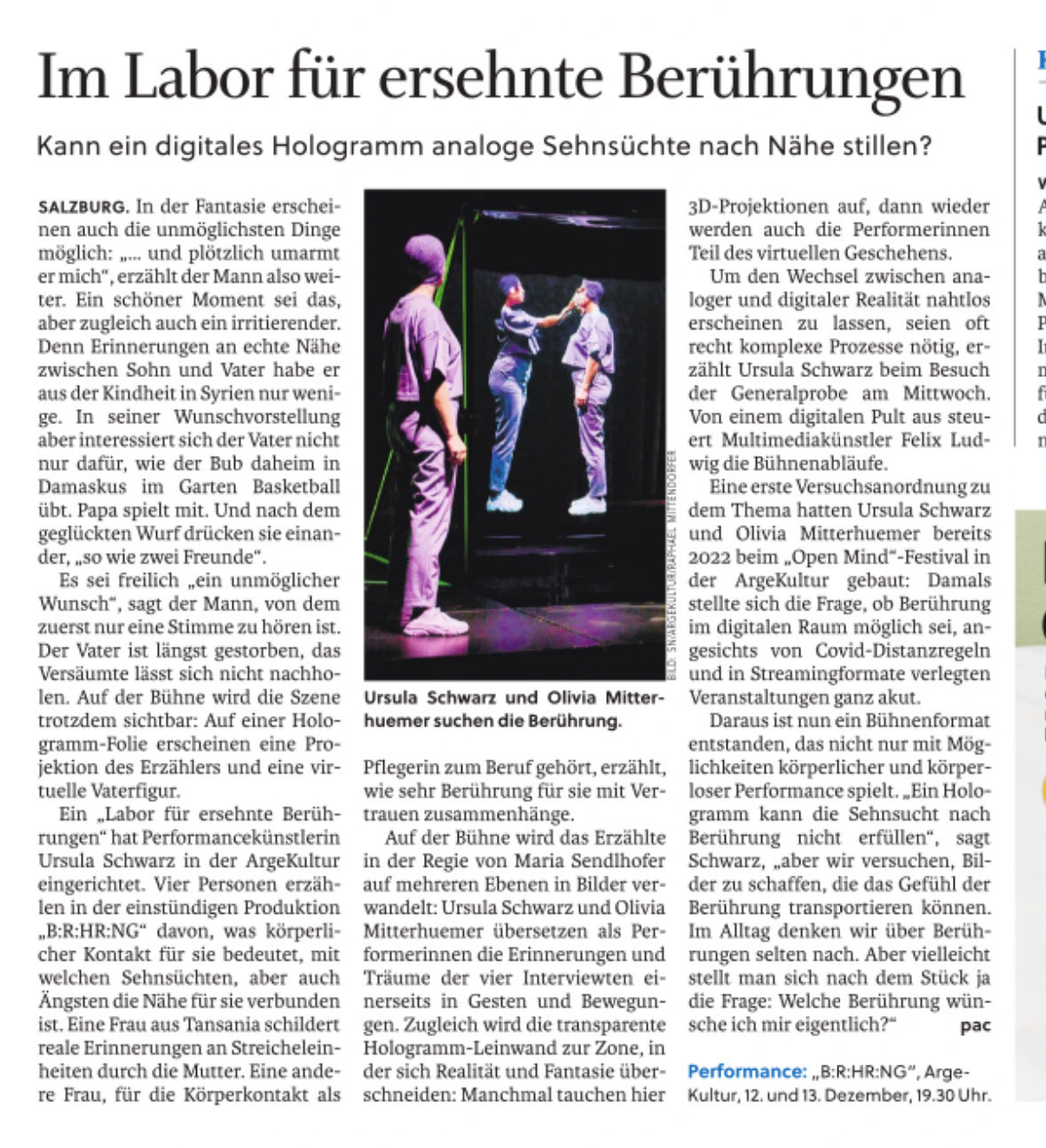 "B:R:HR:NG" in der ArgeKultur: Im Labor für ersehnte Berührungen (Salzburger Nachrichten, 11.12.2024)