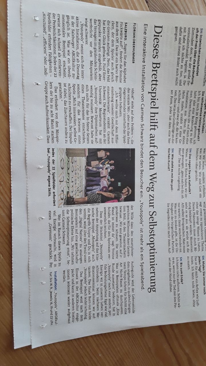 YOUTOPOLY - ein optimiertes Gesellschaftsspiel, ARGEkultur Salzburg, 2019